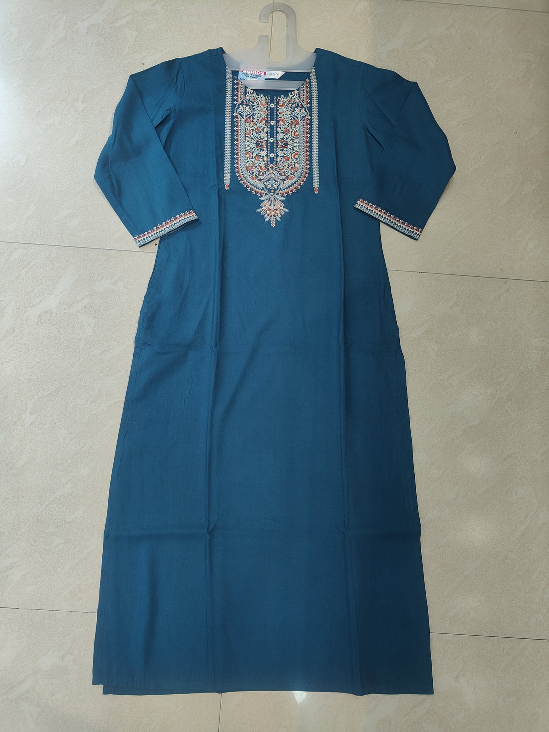 The indigo blue embroidered straight kurti combines traditional craftsmanship with contemporary design. Its intricate embroidery...
