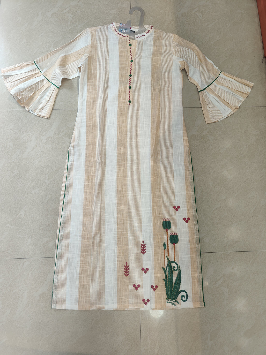 The Half White Colour Embroidered Linen Fabric Straight Kurti is crafted from breathable linen, ensuring...