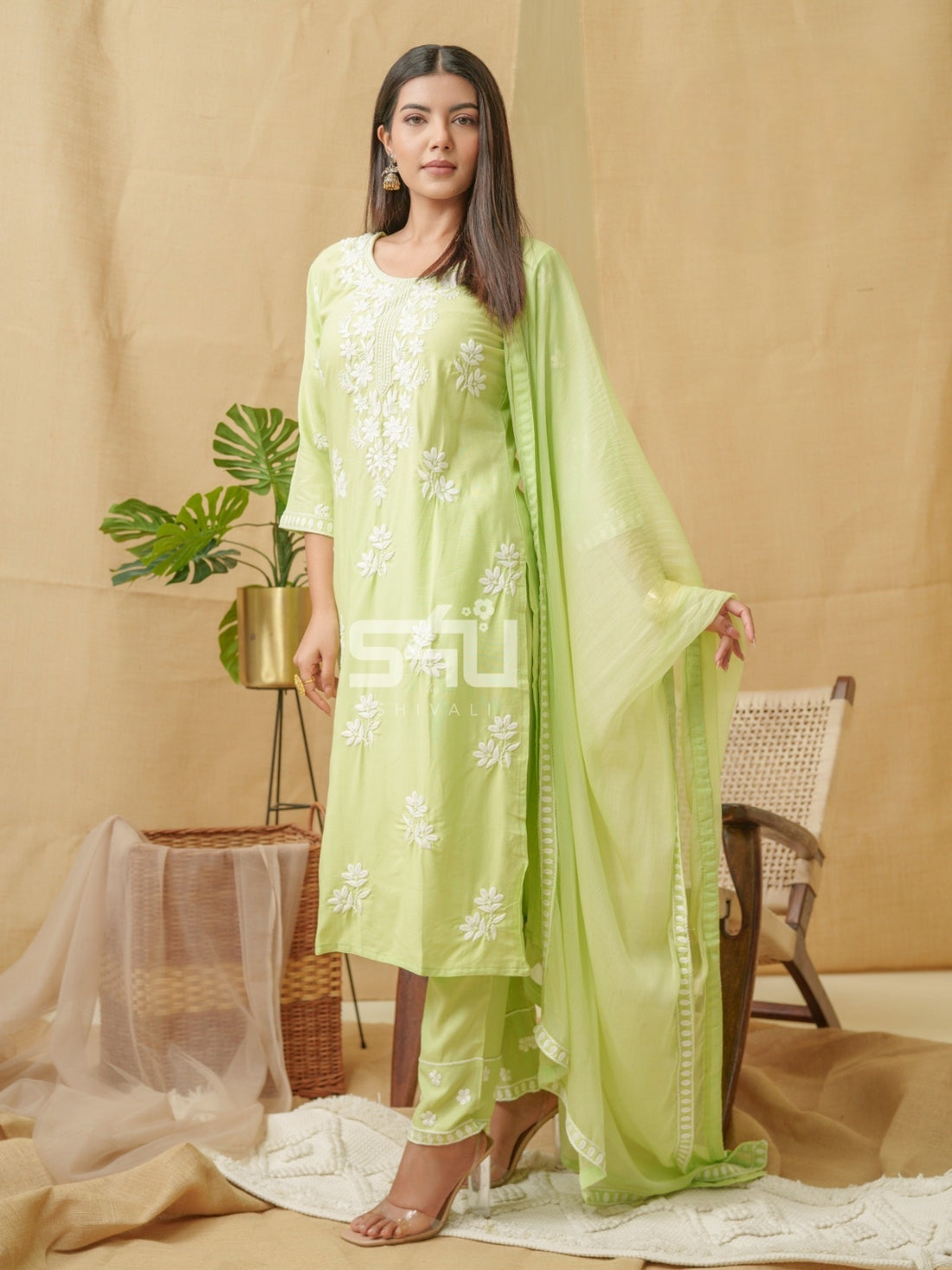 Slub Rayon with embroidery 3 piece kurti set with duppata