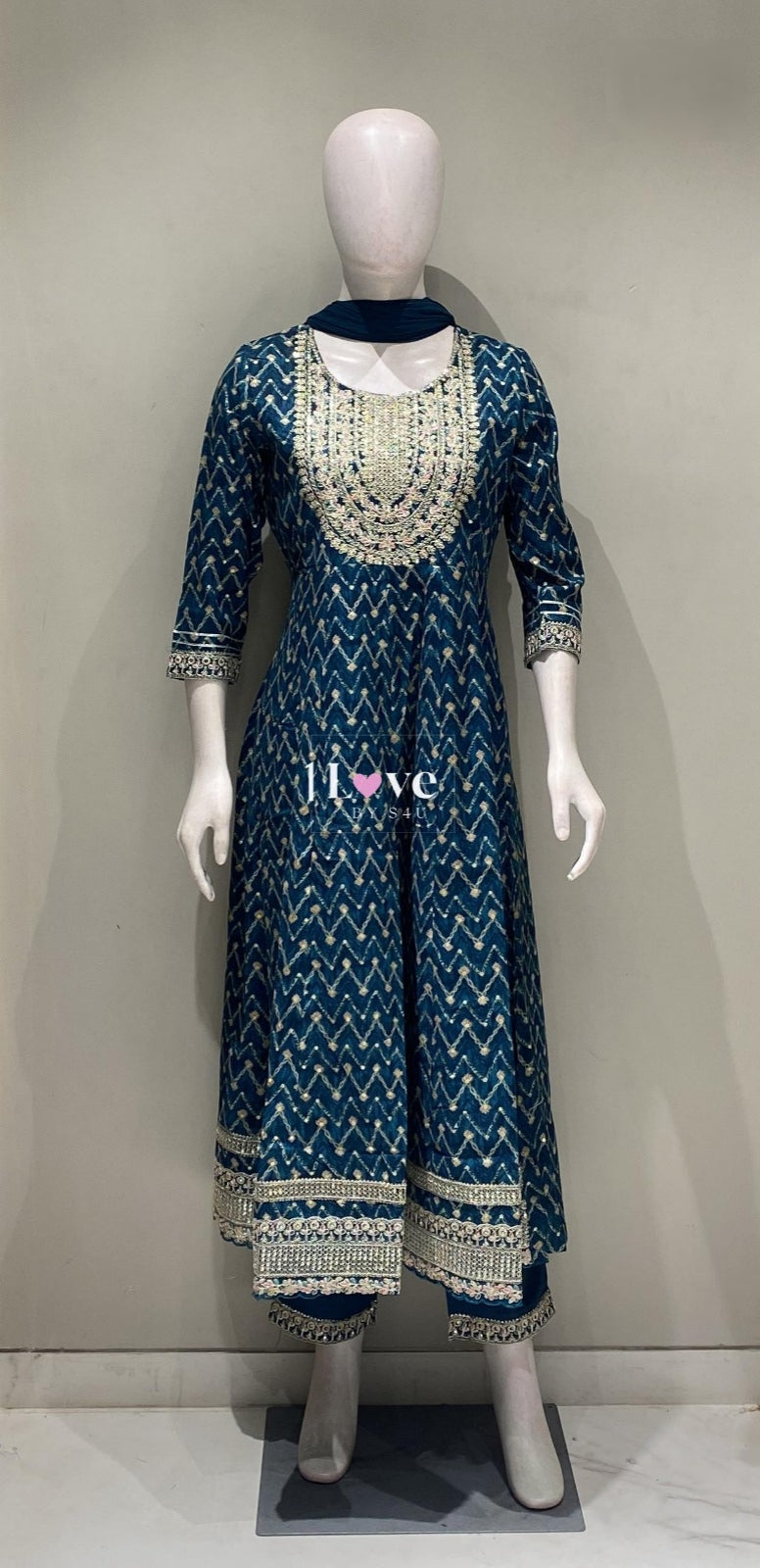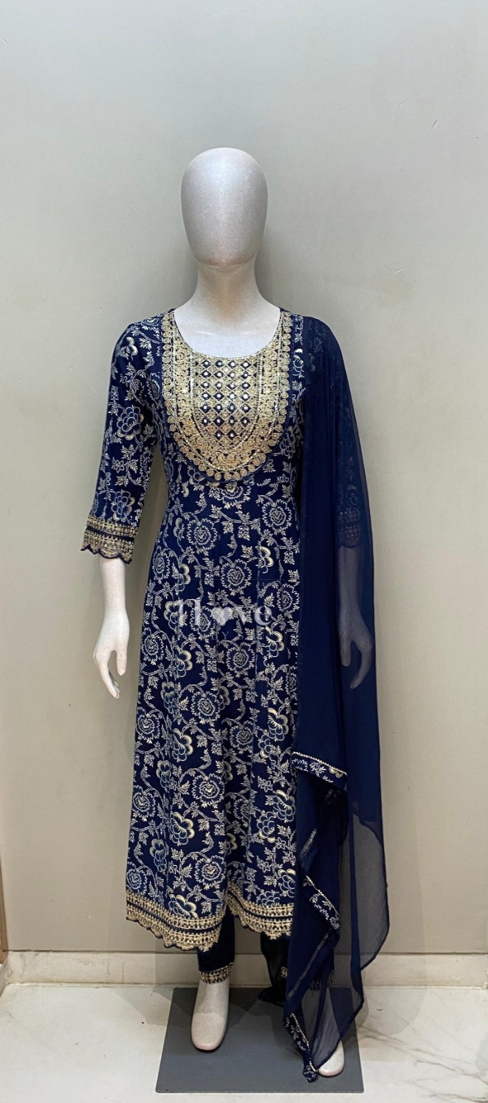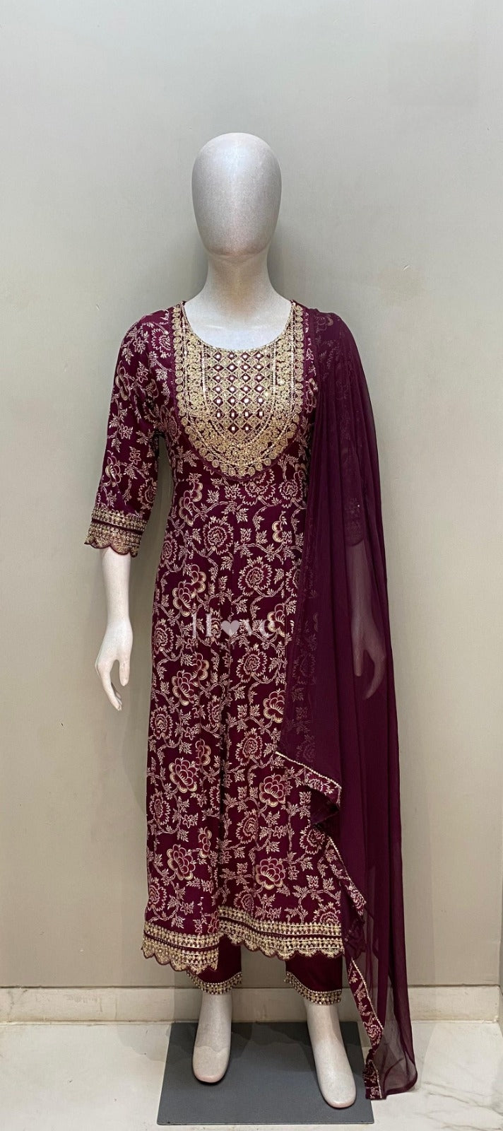 Heavy rayon with embroidered 3 piece frock model set with dupatta