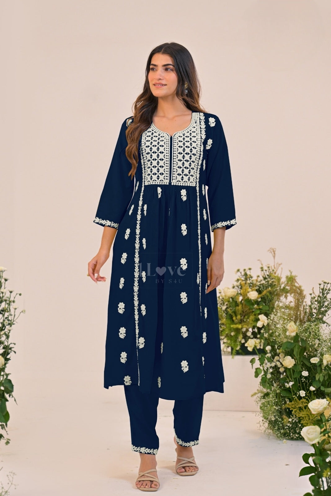 This 3 piece kurti set, made with high-quality Slub Rayon fabric and featuring intricate embroidery,...