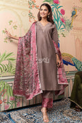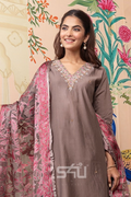 This Muslin Silk 3-piece kurti set features heavy embroidery on the duppata, adding a touch of elegance to your wardrobe. Made from high-quality silk, this set offers both luxury and comfort. The duppata can be styled in various ways, making it a versatile addition to your collection.